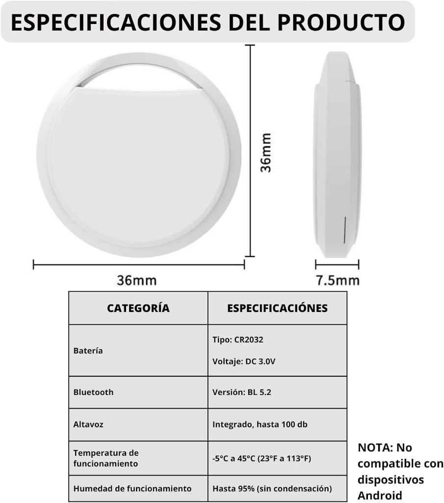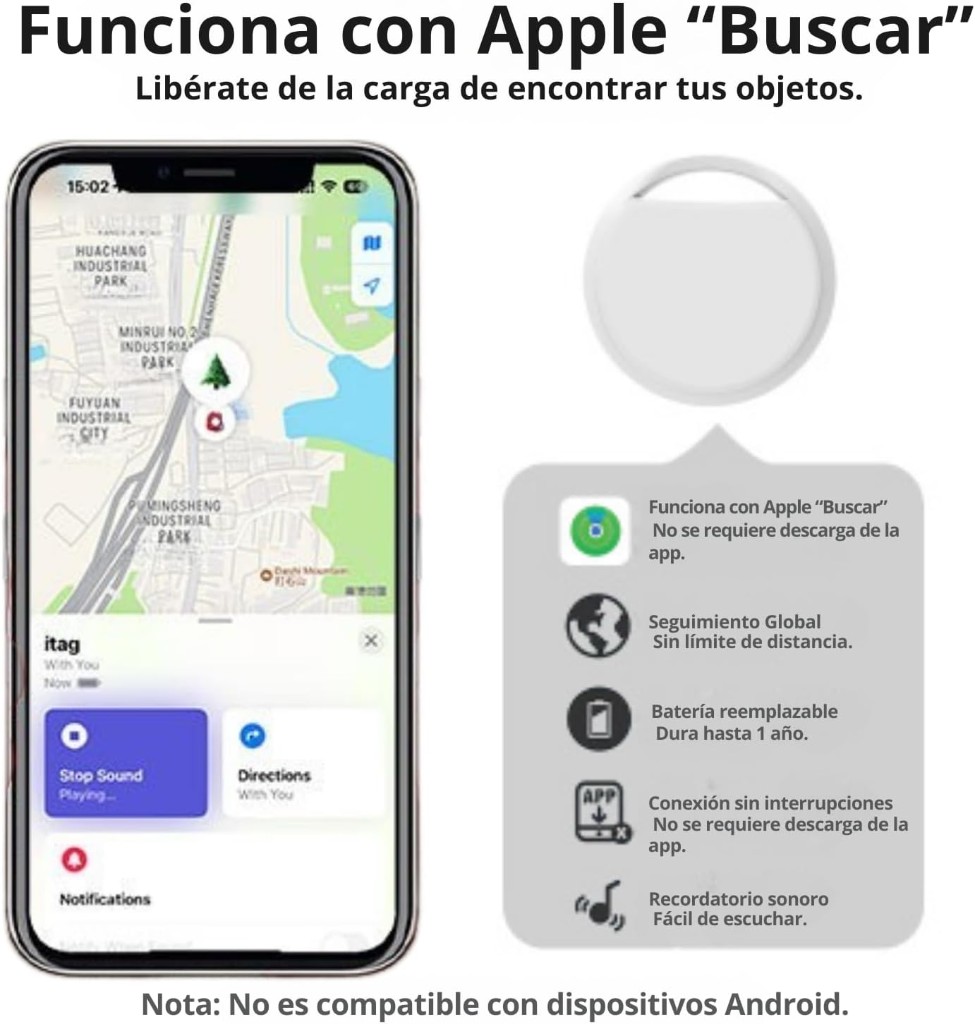 ✅【Compatible con Apple Buscar】📱🍏 – Certificado por Apple, no necesita app adicional, solo abre la app “Buscar” en tu iPhone para localizar tus objetos. Privacidad garantizada con encriptación avanzada: ni Apple ni terceros ven tu ubicación. Compatible con dispositivos Apple solamente|iPhone y iPod touch modelos con iOS 14.5 o posterior|iPad modelos con iPadOS 14.5 o posterior|iMac y MacBook modelos con macOS 12.5 o posteriores