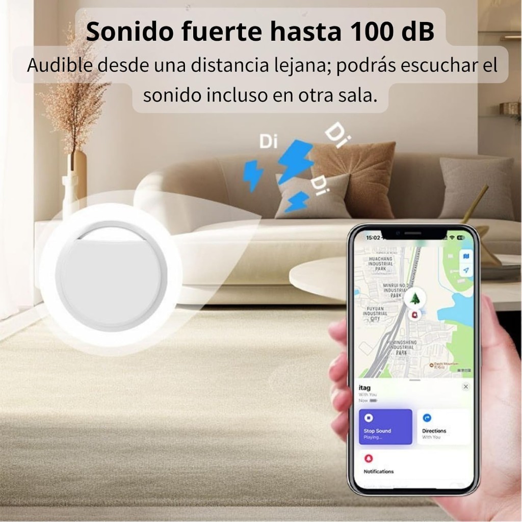 ✅【Alerta Sonora Potente】🔊🔍 – Localiza tus pertenencias con solo tocar un botón. El altavoz integrado emite un sonido de hasta 100 dB. También puedes pedirle a Siri que lo haga sonar. Encuentra llaves, bolsos o carteras en segundos.